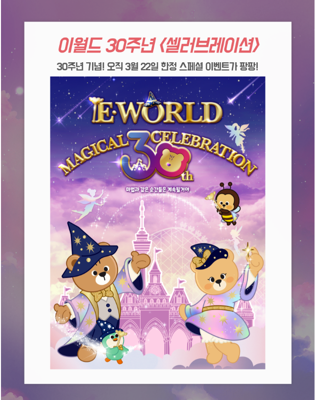 티켓을 예매했다면, 이제 **이월드 30주년 기념 스페셜데이(3월 22일)**를 마음껏 즐길 차례입니다.