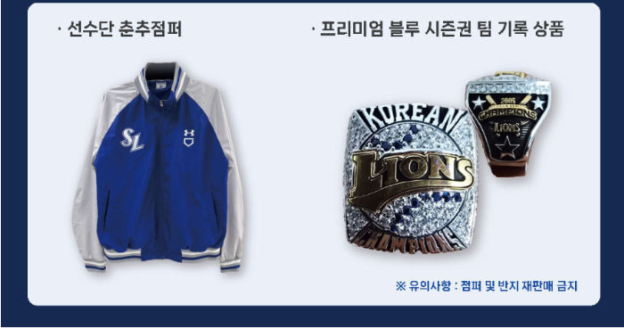 📌 ⚠️ 선수단 춘추점퍼는 프리미엄 블루 시즌권 가입자만 받을 수 있습니다.